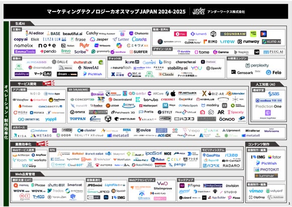 デジタルマーケティングの戦略立案から実行までを支援するアンダーワークス株式会社(本社:東京都港区、 代表取締役社長:田島 学)は、国内で利用可能な主要マーケティングテクノロジー2,019種類を体系的に可視化した「マーケティングテクノロジーカオスマップJAPAN 2024-2025」を発表いたしました。