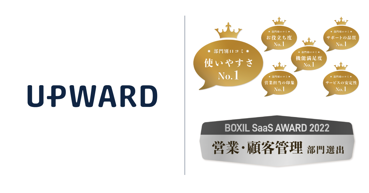 UPWARD、「BOXIL SaaS AWARD 2022」にて「営業・顧客管理部門賞」と「ベスト評価賞」を受賞