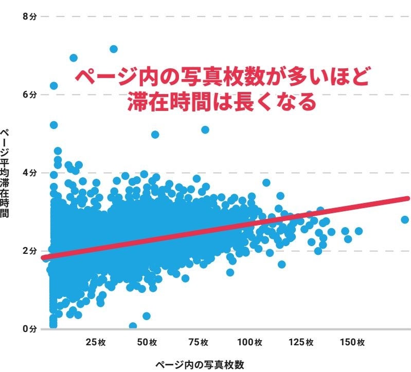 - 写真掲載数とページ滞在時間には「正の相関」が見られる