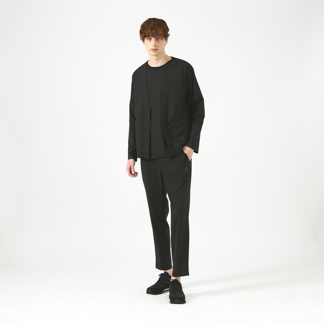 また、同時に今回のコラボレーションにより生まれた、高機能素材を使用したワンマイルウェアシリーズ「纏叉(テンサ)」の「パッカブルTシャツ」、「カーディガン&イージータックパンツのセットアップ」をリリース。本商品はグルーミング時の着用をイメージして企画されたユニークなアイテム。帝人フロンティア(株)の開発素材「MINOTECH®」※を使用。軽い素材感と柔らかな肌触りに加えて、「撥水性」と蒸れを放出する「透湿機能」を兼ね備え、ルームウェアとしても快適な着用感を実現しました。