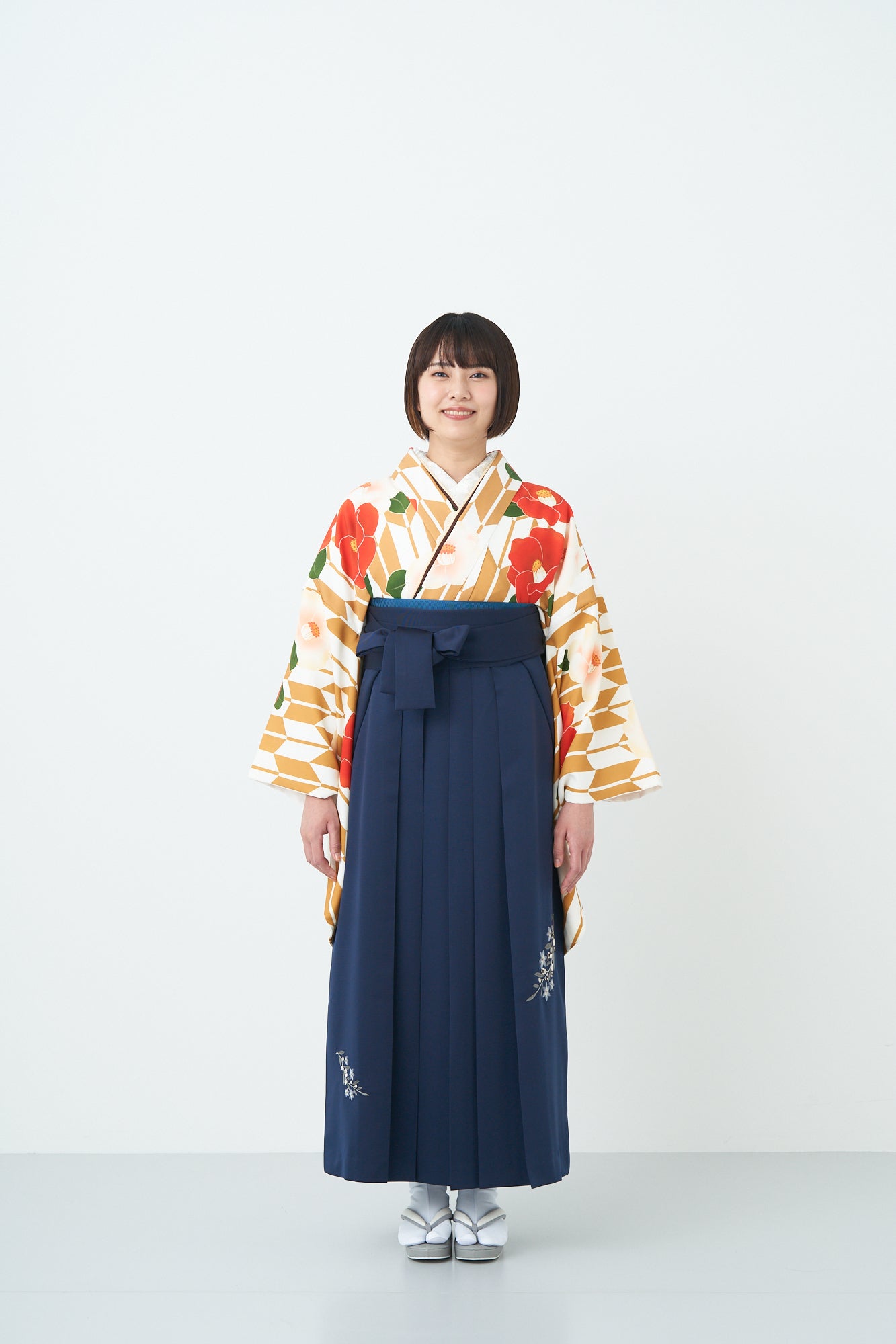 | ≪レンタル内容≫ 1.二尺袖きもの(フリーサイズ) 2.袴下帯(半幅帯) 3.袴 (3サイズ S / M / L) 4.草履(フリーサイズ)またはブーツ(サイズ展開) 5.長襦袢 6.重ね衿 7.和装小物(腰紐2本、伊達〆2本、前板、衿芯) ※肌着・足袋・髪飾りはレンタルに含まれておりません。ご自身でご用意ください |