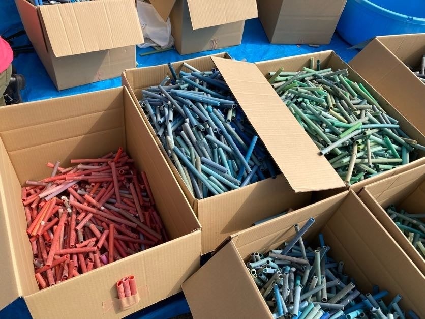 会場の1つである山口・周防大島は、漂着ごみの回収が課題であり、特に養殖産業で利用される牡蠣パイプが島内の海岸に多く流れ着きます。