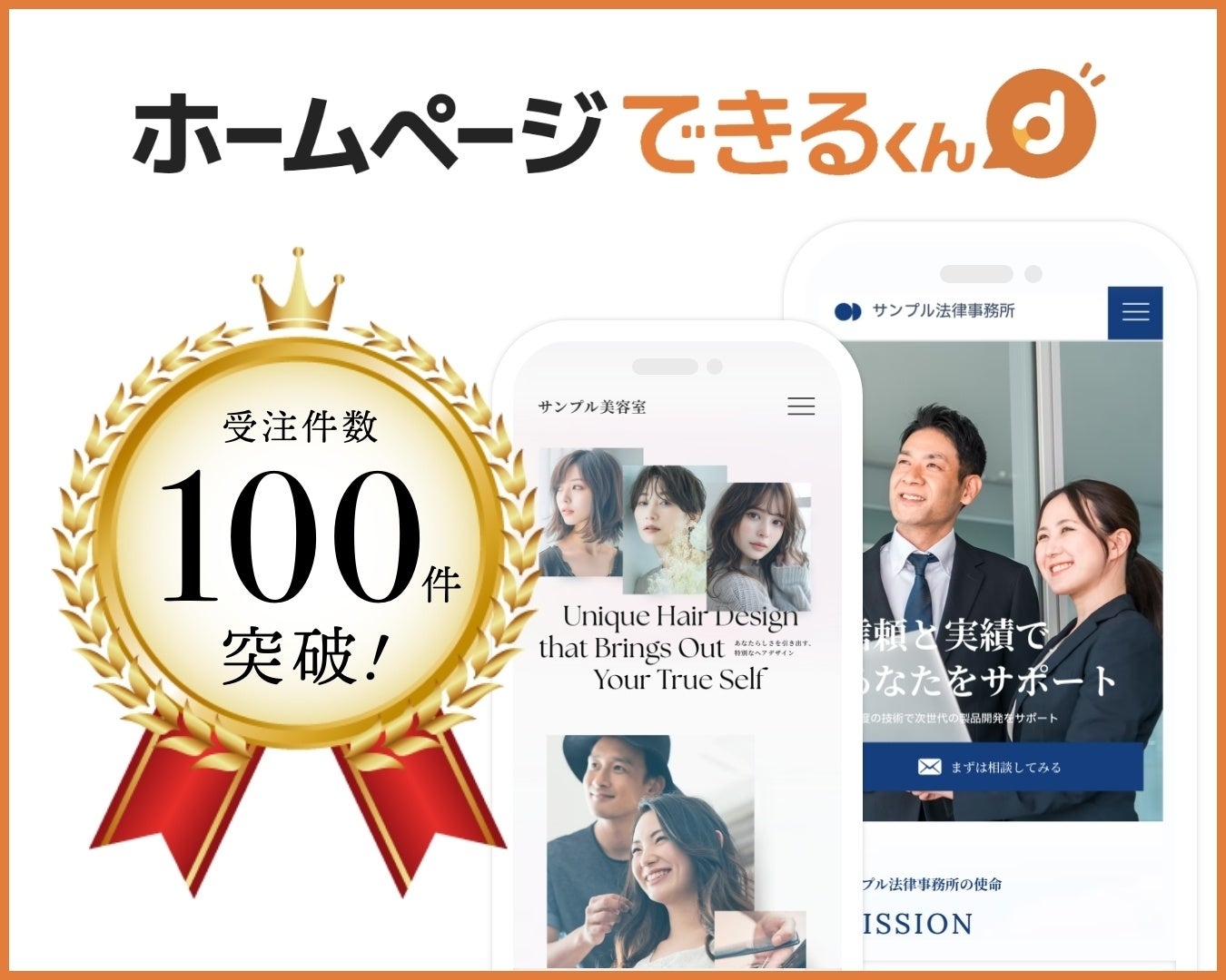 月額数千円から高品質なホームページが依頼できる「ホームページできるくん」が受注100社を突破しました!