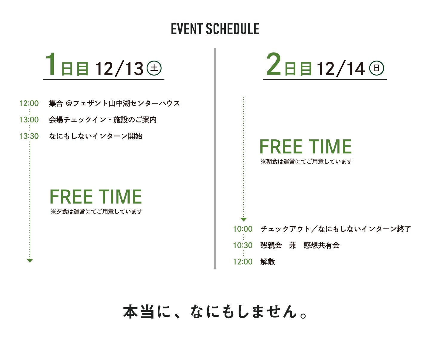 「なんにもない」ところから自らワクワクをつくり出すことのできる創造者たちとの出会いを楽しみにしています。情報、時間、予定、課題。何かに追われるいつもとは正反対の環境に身をおく2日間。頭を空っぽにして、こころを出発点に「はたらく」「暮らす」「生きる」の未来と向き合ってみてください。