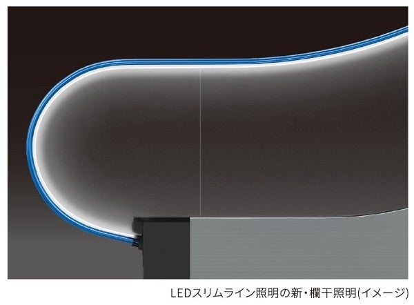 エスカレーターの欄干に新デザインのスリムLEDライン照明を採用しました。エスカレーターの上端から下端まで、スリムな一本のラインで構成されたLED照明によって、エスカレーターのデザインを一層引き立てます。