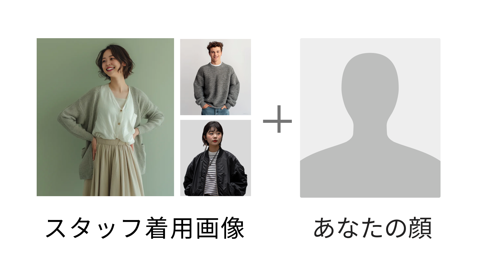 モデルやスタッフコーディネートの顔をユーザーの顔に差し替えることで、着用時のイメージを明確化し、オンラインでの商品購入を促進するサービスです。オンラインでユーザーが洋服を購入する際の「自分に似合うかどうかわからない」という不安を解消することができます。