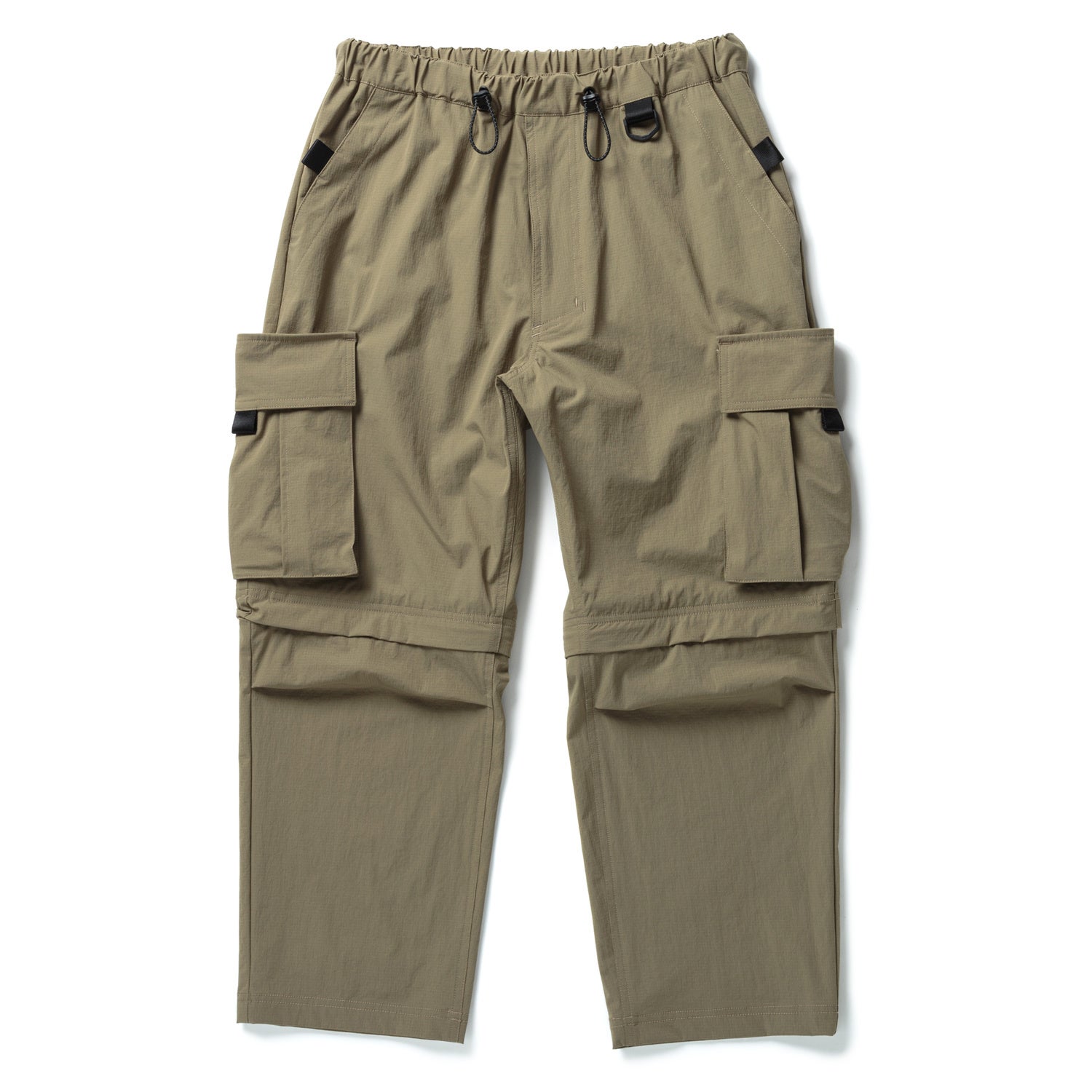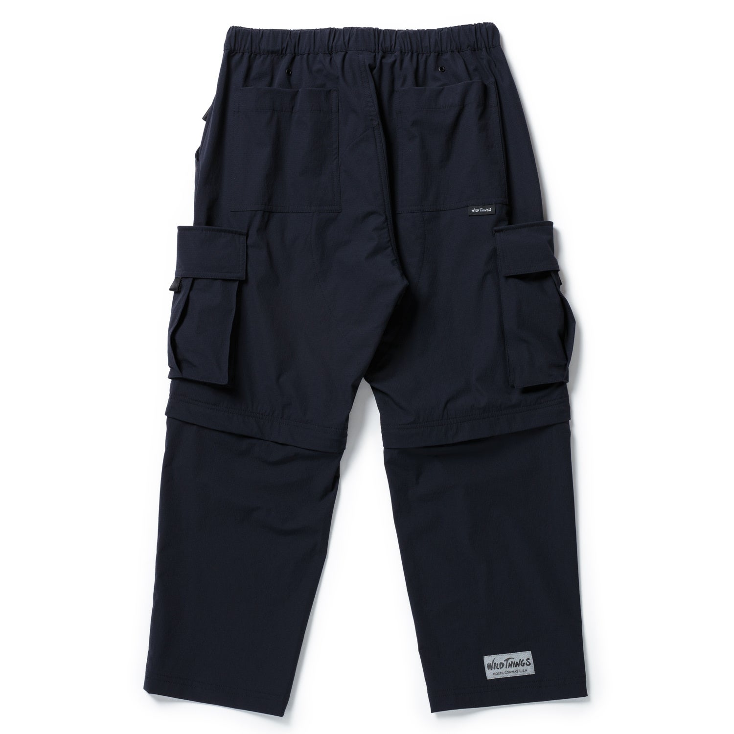 WILD THINGSで展開されていたTACTICAL RIP 7POCKET PANTSをベースに、narifuri独自の機能が盛り込まれたパンツです。パッカブルデナリジャケット同様、表地にはnarifuriオリジナル4WAY撥水ストレッチリップストップを採用。TACTICAL RIP 7POCKET PANTS 自体が収納力のあるアイテムの為、コラボ独自の仕様は自転車に乗るための機能に特化しました。全体的なサイズ感を調整し、テーパードシルエットに変更する事により、ペダリング時に邪魔になる裾のもたつきを軽減解消。ショートパンツ丈へのサイズ変更(2WAY 仕様)のギミックは残し、サドルの接地面であるお尻は二重仕様となっています。裾にはWILD THINGSの特別仕様のリフレクターネームが付属します。