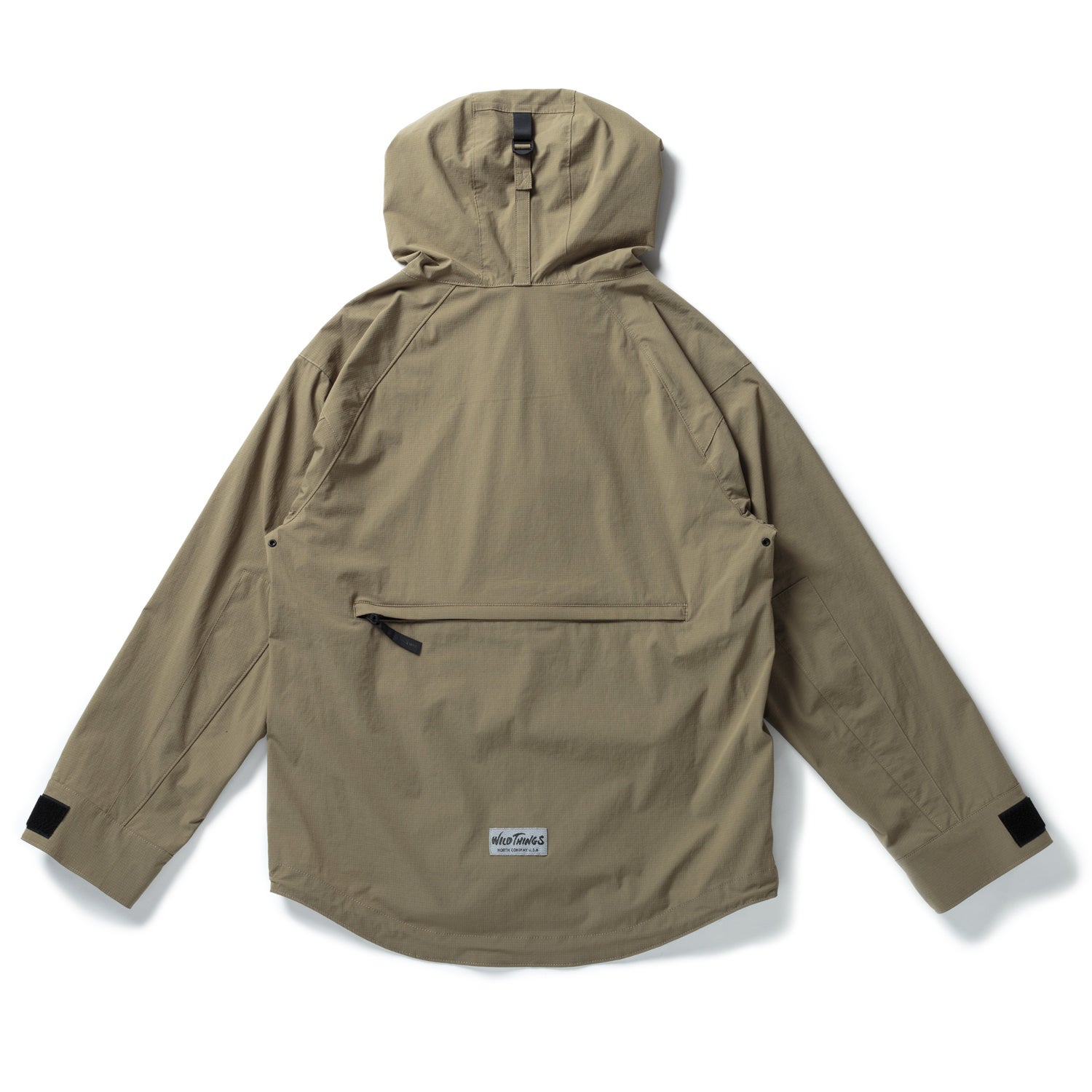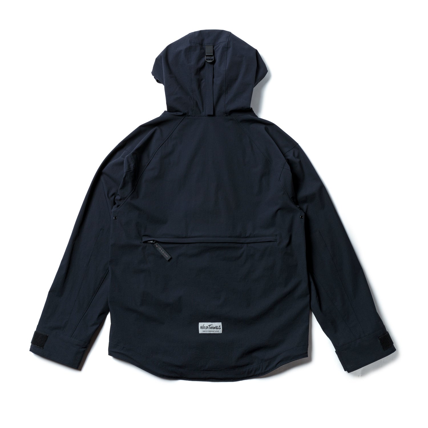 表地にはnarifuriオリジナル4WAY撥水ストレッチリップストップを採用。高密度でしっかりとした耐久性のあるリップストップ生地は、撥水機能がありながら、縦横斜めに伸縮し自転車乗車時の動きを制限する事がありません。また、ムレ防止の為、脇下にはハトメ仕様を追加。DENALI JACKETの特徴の1つであるフロントの大容量ポケットに加え、コラボのみの仕様として後身頃に大容量バックポケットを完備しています。1 泊程度の荷物なら十分収納可能なポケットでありながら、着用していない時はひっくり返す事でサコッシュになる特別仕様となっています。今回のコレクションアイテムには、WILD THINGSの特別仕様のリフレクターネームが付属します。