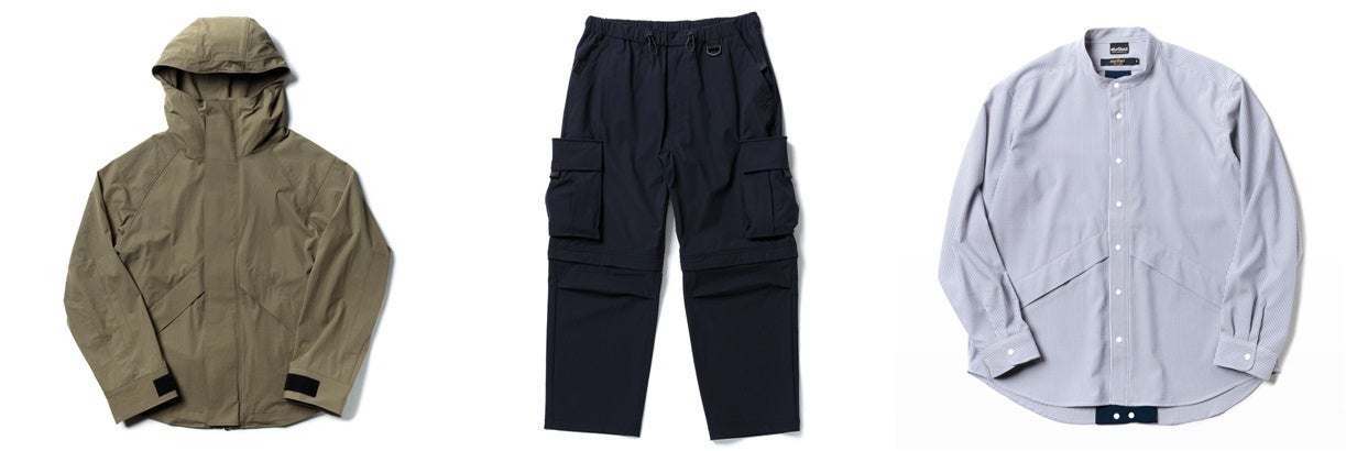 「FIELD PROTECT RIDE」をテーマとした今回のコレクションでは、日常から非日常へ、タウンユースでありながらアウトドアフィールドも自転車での移動や遊びをストレスなく身軽に気軽に楽しもうというコンセプトで、服自体に収納を持たせ、自転車乗車時にバックを持つ事で生じるストレスや問題解消を目的としたアウター、シャツ、パンツの3アイテムが登場。両ブランドがバックボーンに持つ、自転車とアウトドアの要素を融合したコラボレーションとなっています。