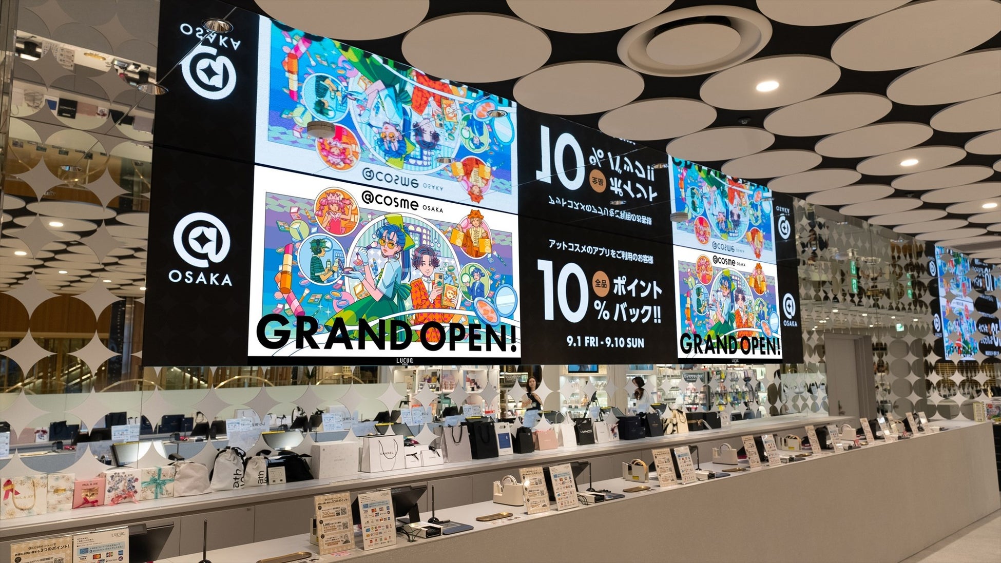 この度、2023年9月にオープンした関西初のフラッグシップショップ「@cosme OSAKA」に、高精細LEDビジョン、液晶ディスプレイを複数台採用いただきました。