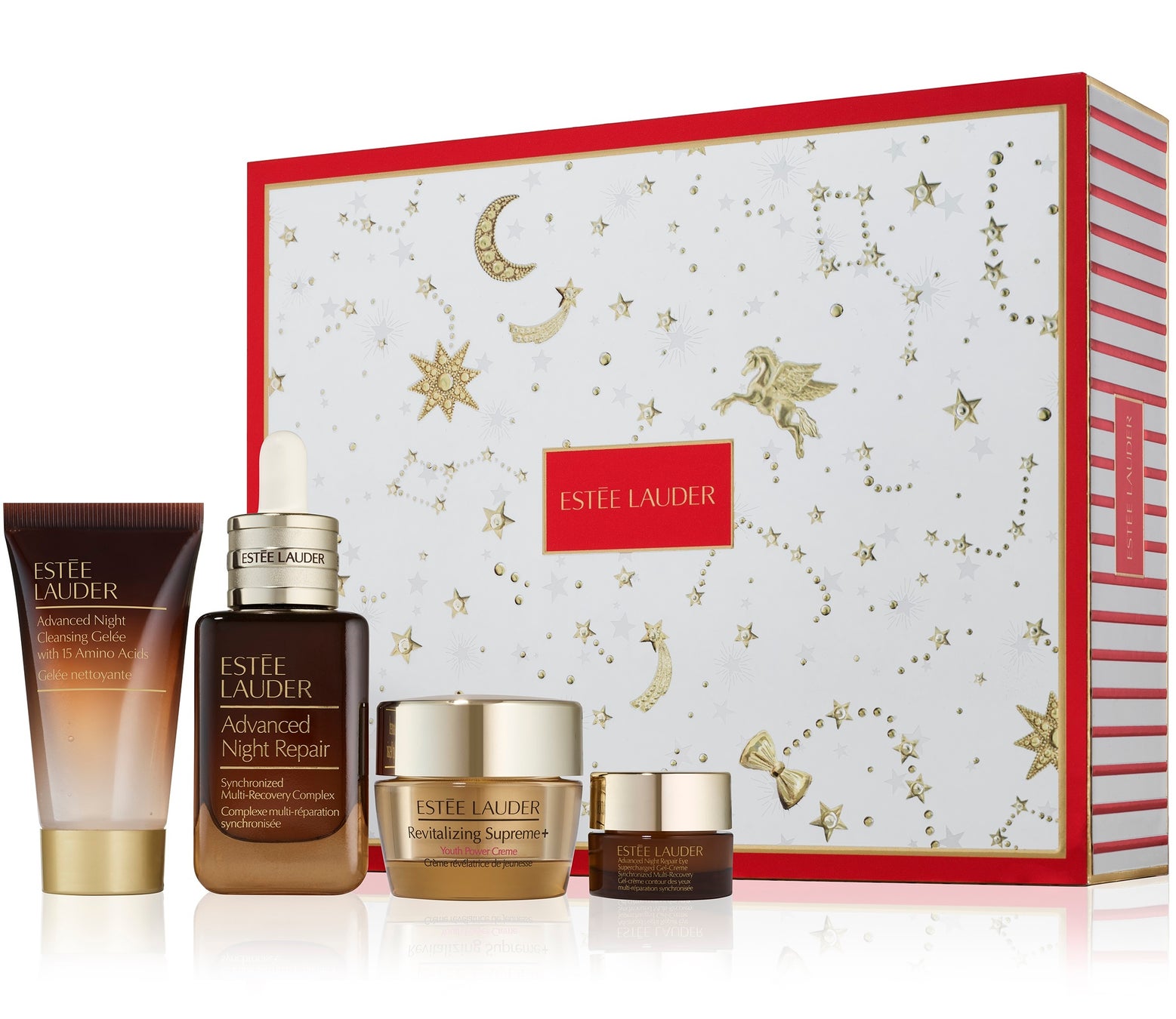 「ホリデーに向けて、肌を一段引き上げたい!」そんなあなたへ。ロング&ベストセラー記録を更新中の美容液『アドバンス ナイト リペア』シリーズをトータルで試せるセット。ホリデー限定スペシャル ボックスに、50mLサイズの美容液現品とアイジェル クリーム、モイスチャライザーのスペシャル サイズ、さらに2023年秋発売予定の新星クレンジングジュレもお付けします。肌ダメージが気になる季節だからこそ、ナイト リペアの手ごたえを。
