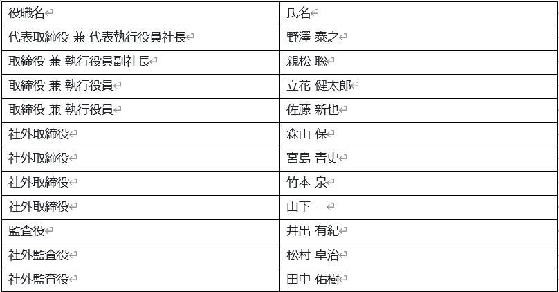 | 代表取締役 兼 代表執行役員社長 | 野澤 泰之 |