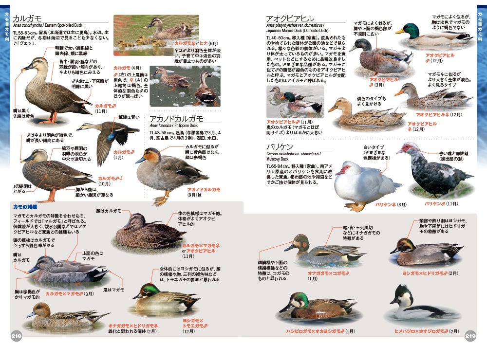 ・雌雄や成鳥、幼鳥、若鳥、夏羽、冬羽、換羽中の個体、亜種、個体差など、可能な限り多くのバリエーションを掲載しました。