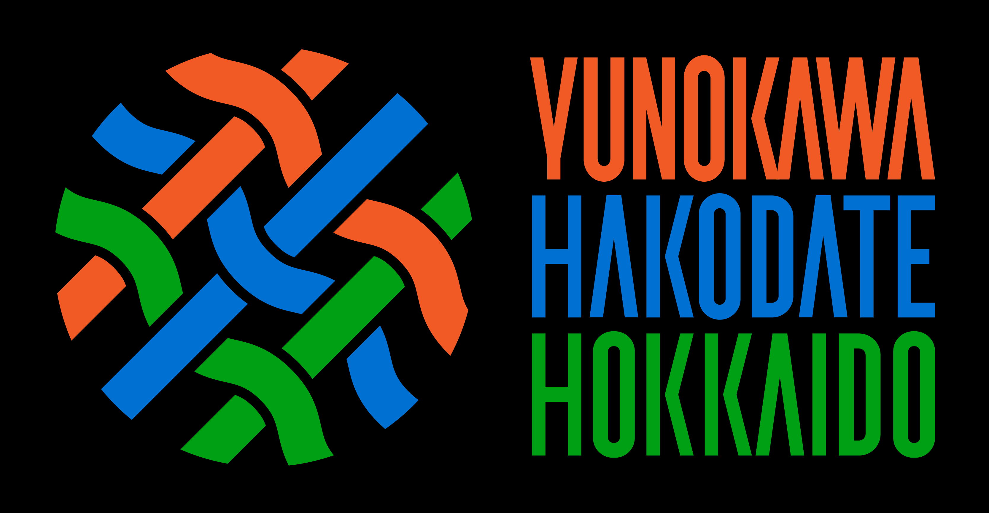 オレンジは温泉を象徴し湯の川を、ブルーは函館の海を、グリーンは北海道の大地を表しています。