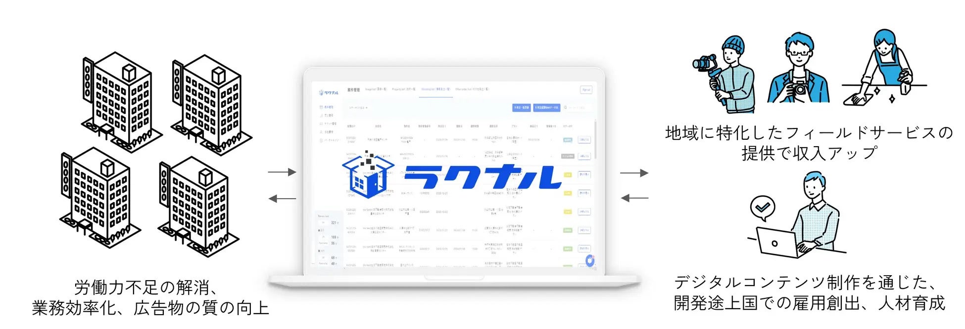 ラクナルは、不動産企業の反響獲得や日常業務の効率化をワンストップでサポートするBPOプラットフォームです。本サービスを通じて日本の不動産業界の労働力不足の解消と、開発途上国での雇用創出・人材育成の両方に寄与していきます。