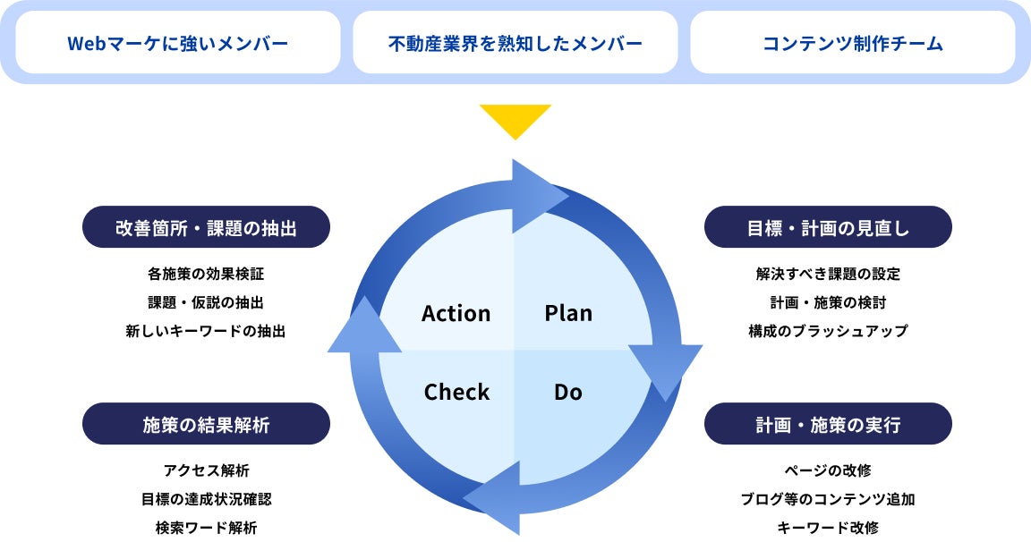 多くの売主様にサイトに訪れてもらうためのSEO対策も行なっていきます