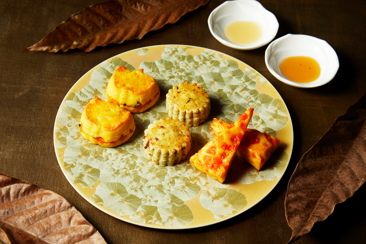 スコーンには、かぼちゃ型にくり抜いたかぼちゃ、にんじん、ベーコンバジルとこれまでになかったフレーバーが登場。冷めてもおいしい工夫を凝らしています。添えられたフランス産オレンジはちみつとイタリア産百花はちみつはスコーンにつけて、またはそのままで。奥深く、複雑な味が特長です。