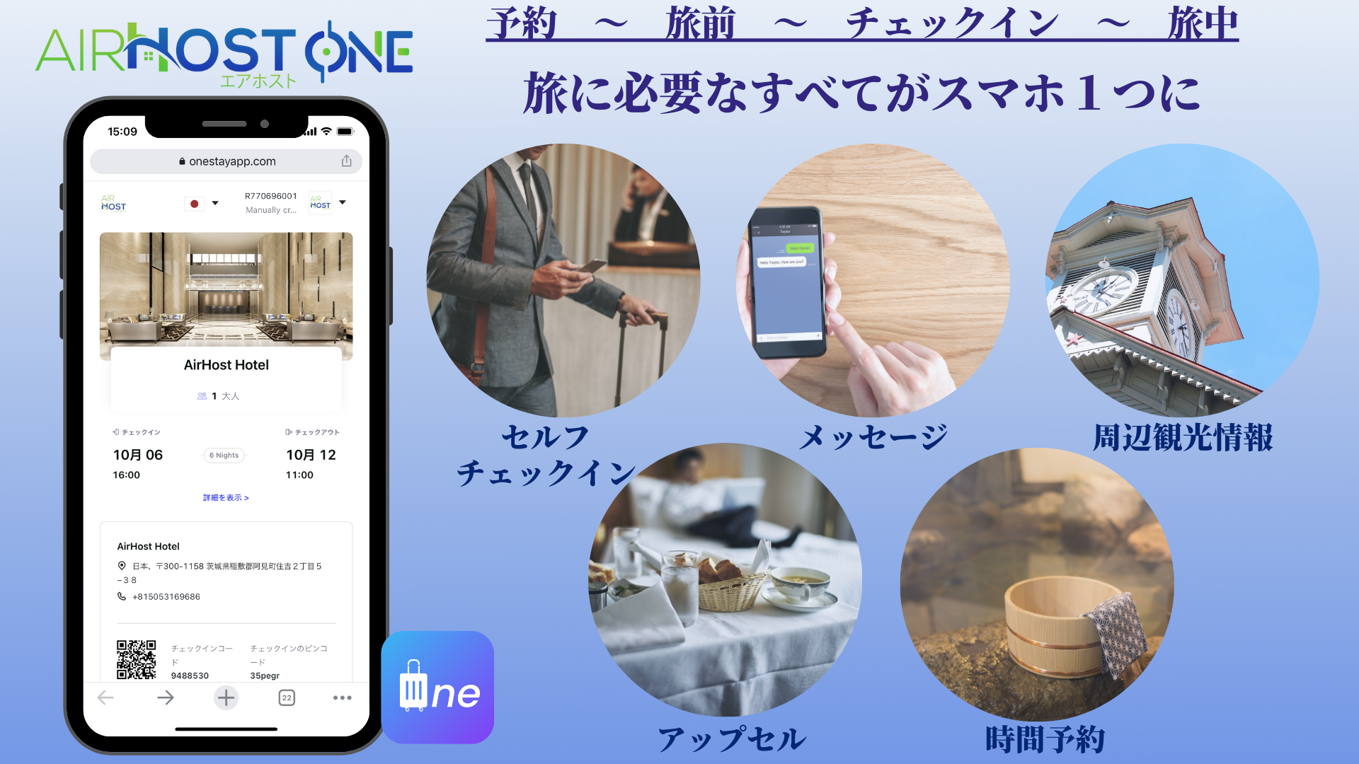 「AirHost ONE」は、旅前から、旅中・旅後まで効果的に旅行者にアプローチができる旅行者向けアプリ(Webブラウザ, iOS, Android 対応)です。