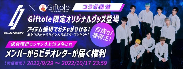 株式会社Birdman(本社:東京都渋谷区、証券コード:7063、代表取締役:伊達晃洋、以下当社)のエンターテインメント事業に特化した⼦会社「株式会社Entertainment Next」に所属する韓国のグローバルボーイズグループ「BLANK2Y(呼称:ブランキー)」と、特別コラボレーション第2弾が決定いたしました。第2弾では、TSUTAYA オンラインゲーム Giftole(呼称:ギフトーレ / https://official.giftole.jp/)を、2022年9月29日(木)〜10月17日(月)まで実施いたします。また、コラボを記念して「メンバーからビデオレターが届く権利」が手に入るスペシャルイベントも開催いたします。