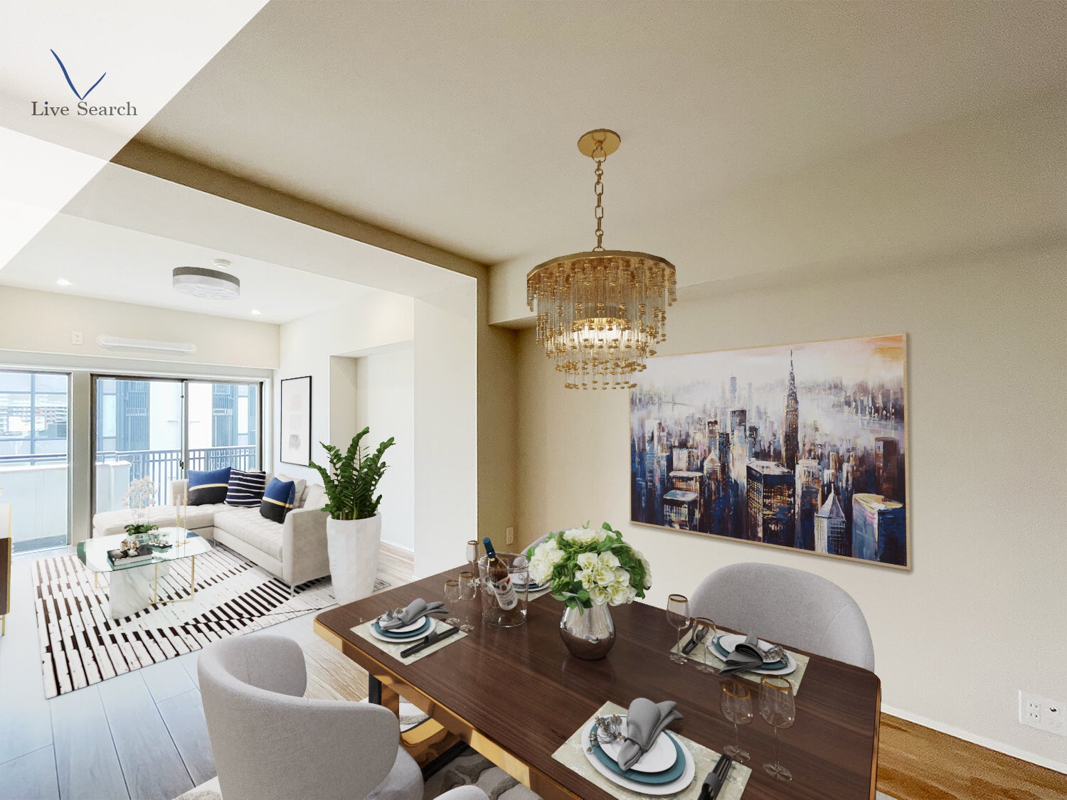 物件写真に精通したカメラマン及び画像編集スタッフで構成されたチームによって作られる空室写真に、さらに3Dモデリングによる家具や家電、インテリアを施しモデルルームのような画像を制作します。コストを抑えつつ、インテリアコーディネイトされた写真により居住イメージが掴みやすくプロモーション効果を見込めるコンテンツとしてご好評いただいております。ビフォーアフターとしての比較もしていただき易いように、空室状態の写真と3DCGバーチャルホームステージング後の写真のどちらもダウンロード提供をいたします。
