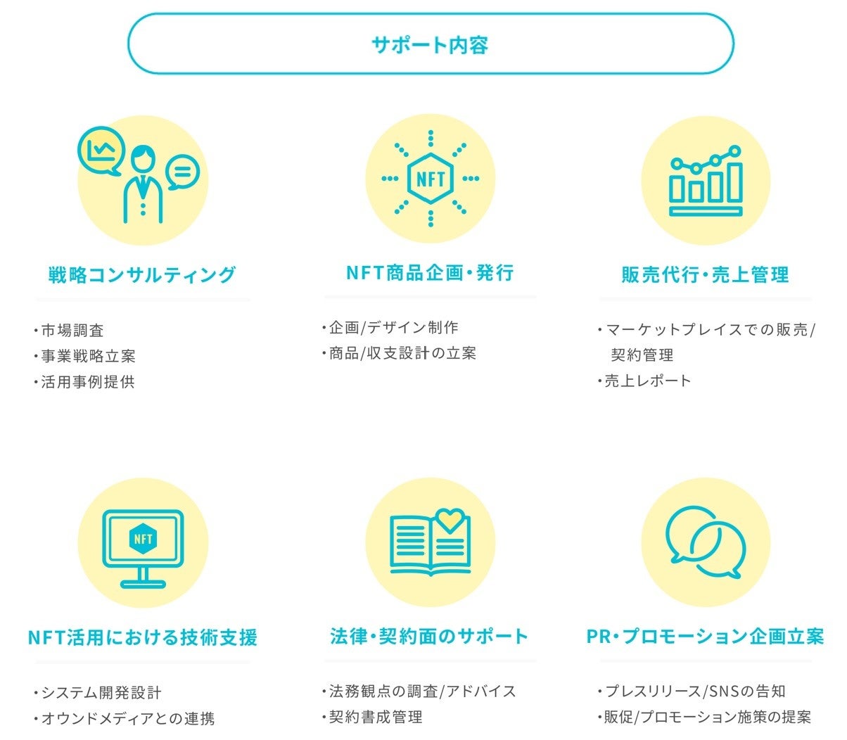 CDGは、幅広いライセンスホルダーとのネットワークに加え、ライセンス管理やコンテンツ開発における豊富な実績を活かし、今後もコンテンツの価値をさらに高められるようなNFTの企画、戦略コンサルから技術的支援、販売そして法務関連の支援までワンストップで幅広く対応しております。