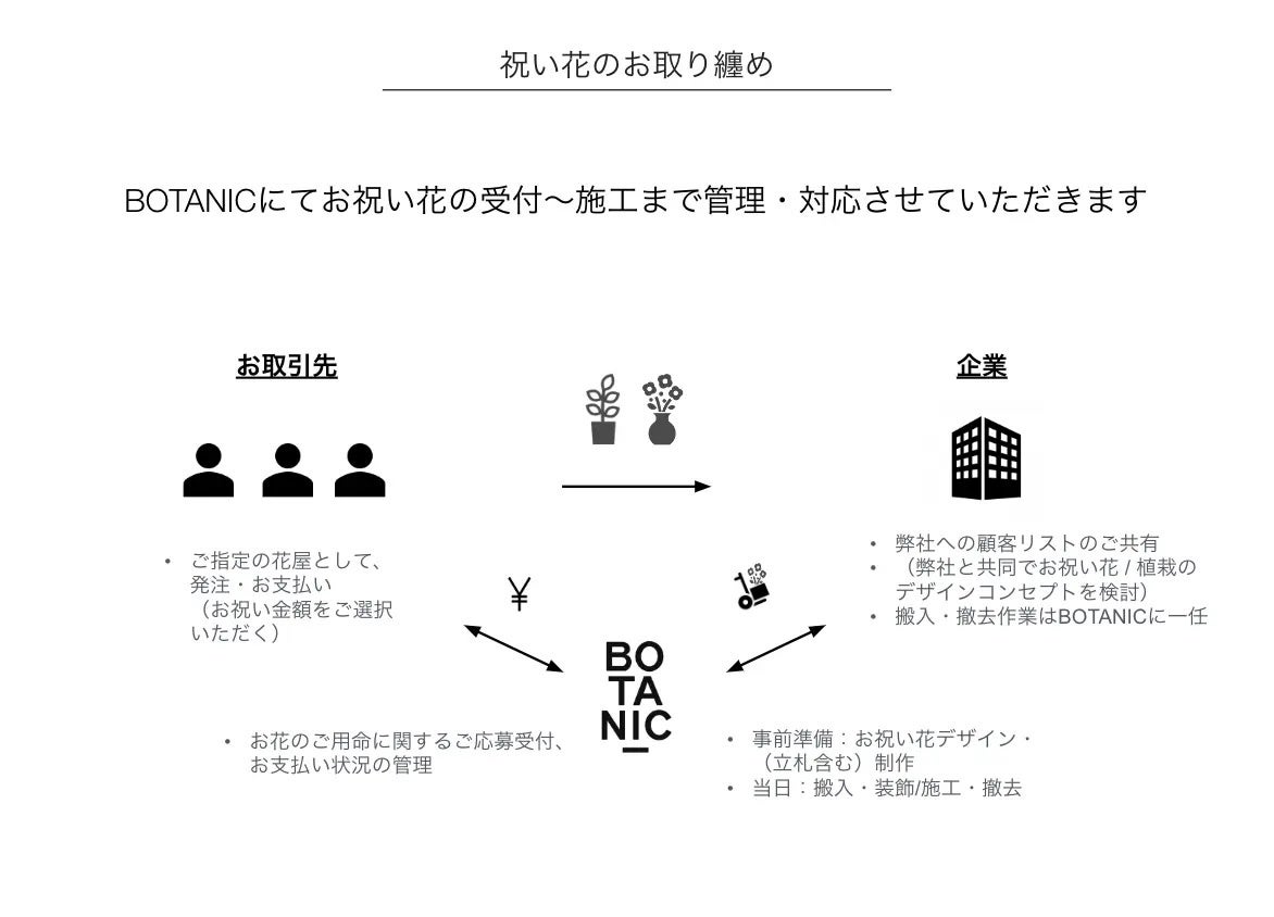 祝い花は法人の間でのギフトカルチャーですが、それを目にする贈り主以外の関係者やファンの皆様、個人消費者を巻き込む施策に取り組みます。