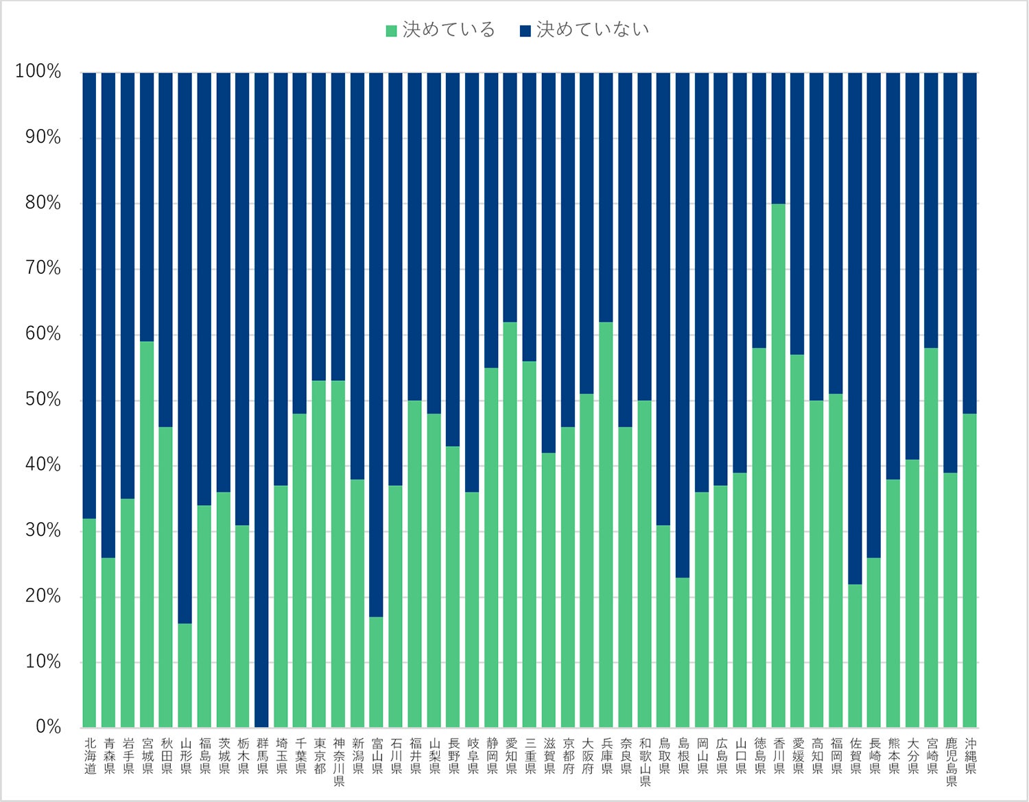 南海トラフ地震帯に近い地域では、事前に待ち合わせ場所を決めている家庭が多く、特に香川県では8割の方が設定していることが分かりました。一方で、北海道や東北地方では待ち合わせ場所を設定していない家庭が多いという結果が出ています。