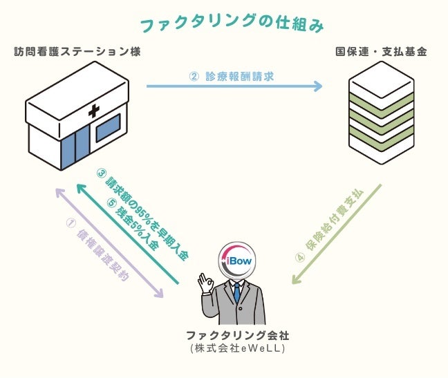 在宅医療の支援サービスを提供する株式会社eWeLL(証券コード:5038 本社:大阪市中央区 以下eWeLL)は、2024年10月1日より、訪問看護向けファクタリングサービス「iBow e-レセ」の提供を開始します。
