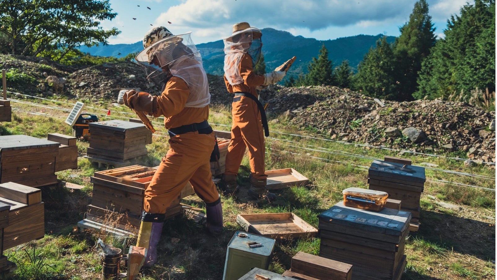 全員が「養蜂未経験」の状態から立ち上げた蜂蜜ブランド。2019年に様々な経歴を持つ3名が西粟倉村に移住して集い、株式会社エーゼログループの新規事業としてゼロから立ち上げました。