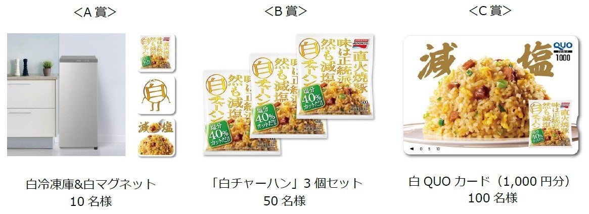味の素冷凍食品【公式】X(旧Twitter)アカウント(@ff_ajinomoto)をフォローし、キャンペーン対象投稿をリポストされた方の中から、抽選で計160名様に白冷凍庫&白マグネットなど白い豪華景品が当たります。