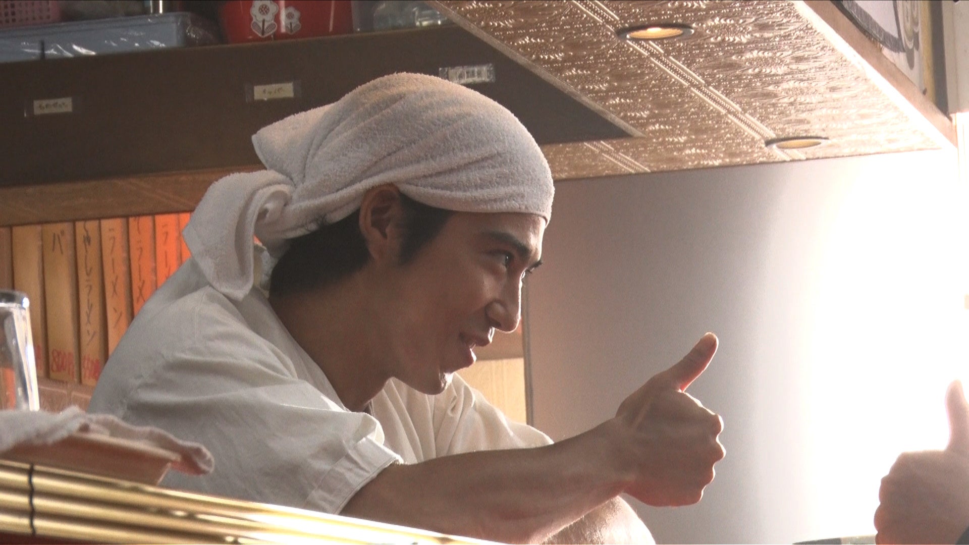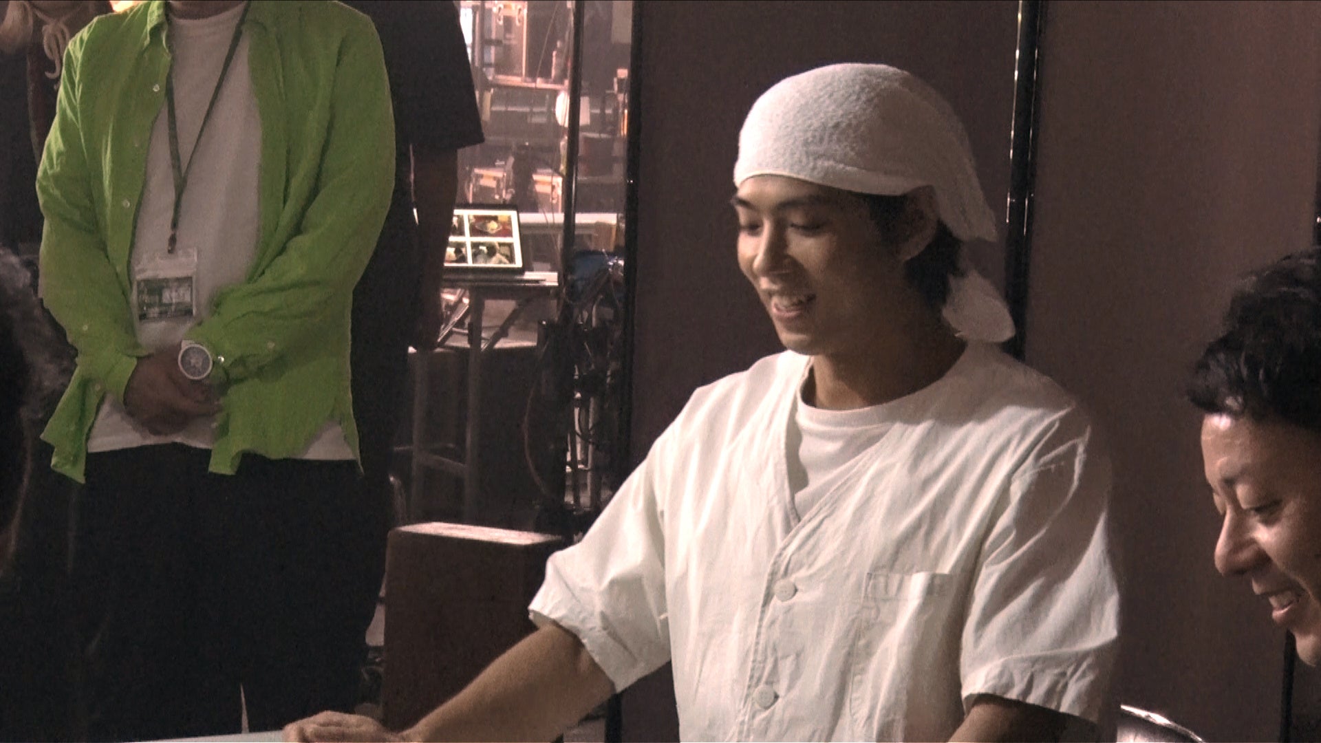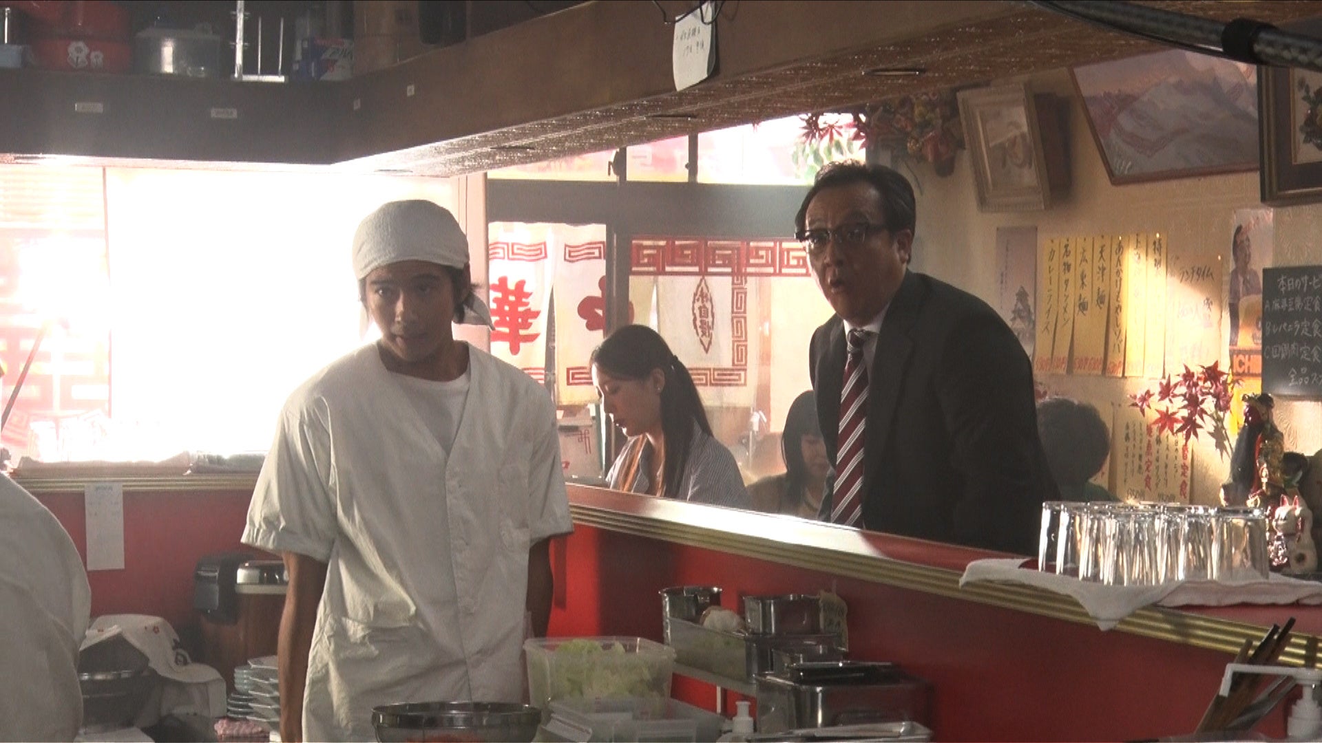 お客さんに「白チャーハン」を提供するシーンのファーストテイクから、町中華の“大将感”を前面に押し出し、セリフ、表情、アクションのいずれもほぼ完璧に演じて、完全に役になりきっていた賀来さん。ワンテイク毎に飛ぶ「セリフを少し巻いて」「全体的にもっと勢いがほしい」といった監督の指示にも、的確かつノリノリで応えると、回を重ねる度に冗舌かつ貫禄も増してきて、次々とOKテイクを量産し、現場を大いに湧かせていました。