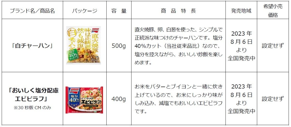 新商品の「白チャーハン」減塩なのに言われないとわからないくらい本当に満足感たっぷりのおいしい商品になっています。CMをとおして、そのおいしさが伝わればと思いますし、ぜひ普段のご家庭の食事の定番にしていただければ嬉しいなと思います。ぜひ「白チャーハン」を今後ともよろしくお願いします!