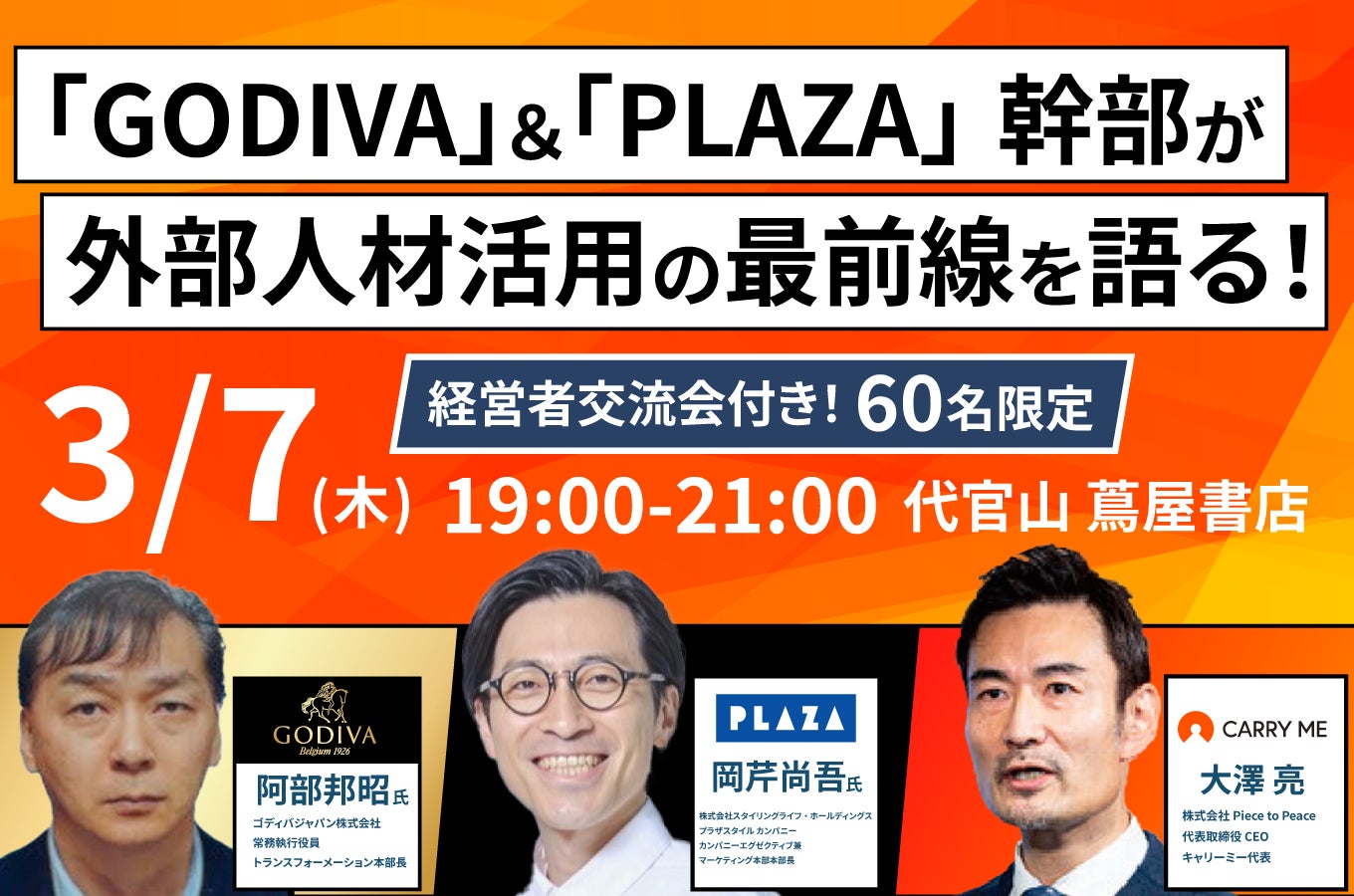 プロ人材マッチングサービス「キャリーミー」経営企業代表の大澤亮&「GODIVA」&「PLAZA」幹部が外部人材活用の最前線を語る!