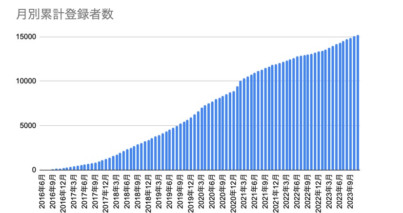 当社のプロ人材マッチングサービス「キャリーミー」の登録者数は右肩上がりとなっており、2023年に累計1.5万人を突破しました。コロナ禍におけるビジネスパーソンの複業や独立への意識の高まりから2020年1月末からの約1年で4,000名以上のプロ人材が登録し、大企業やベンチャー企業など様々な企業のマーケティング領域中心に起用いただける人材が増加中です。