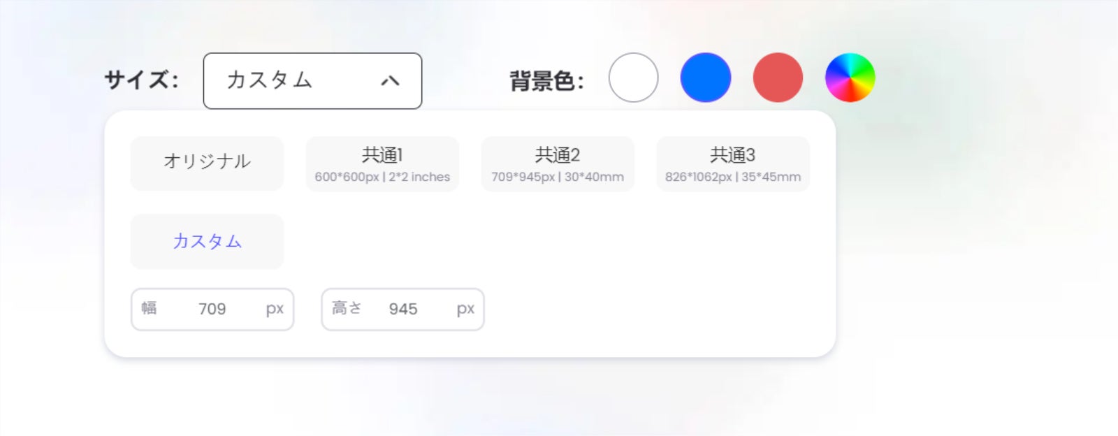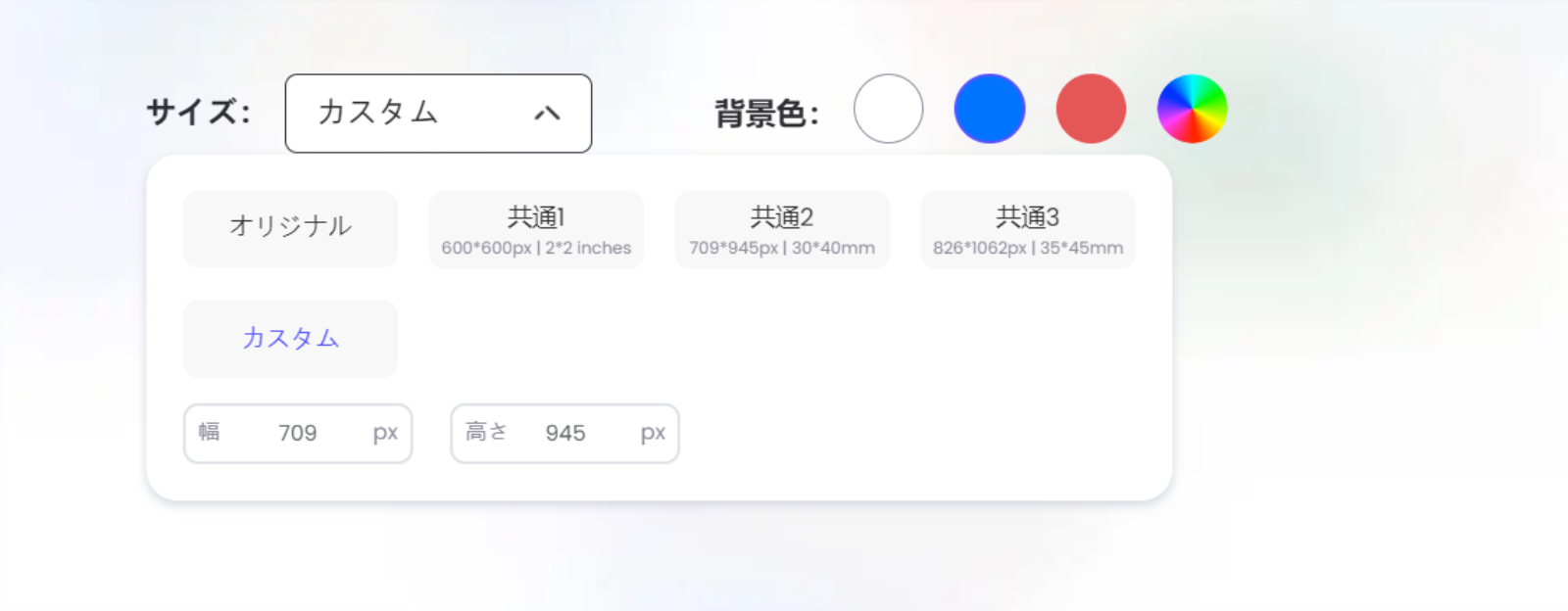 3.サイズと背景色を設定してから画像をアップロードします。