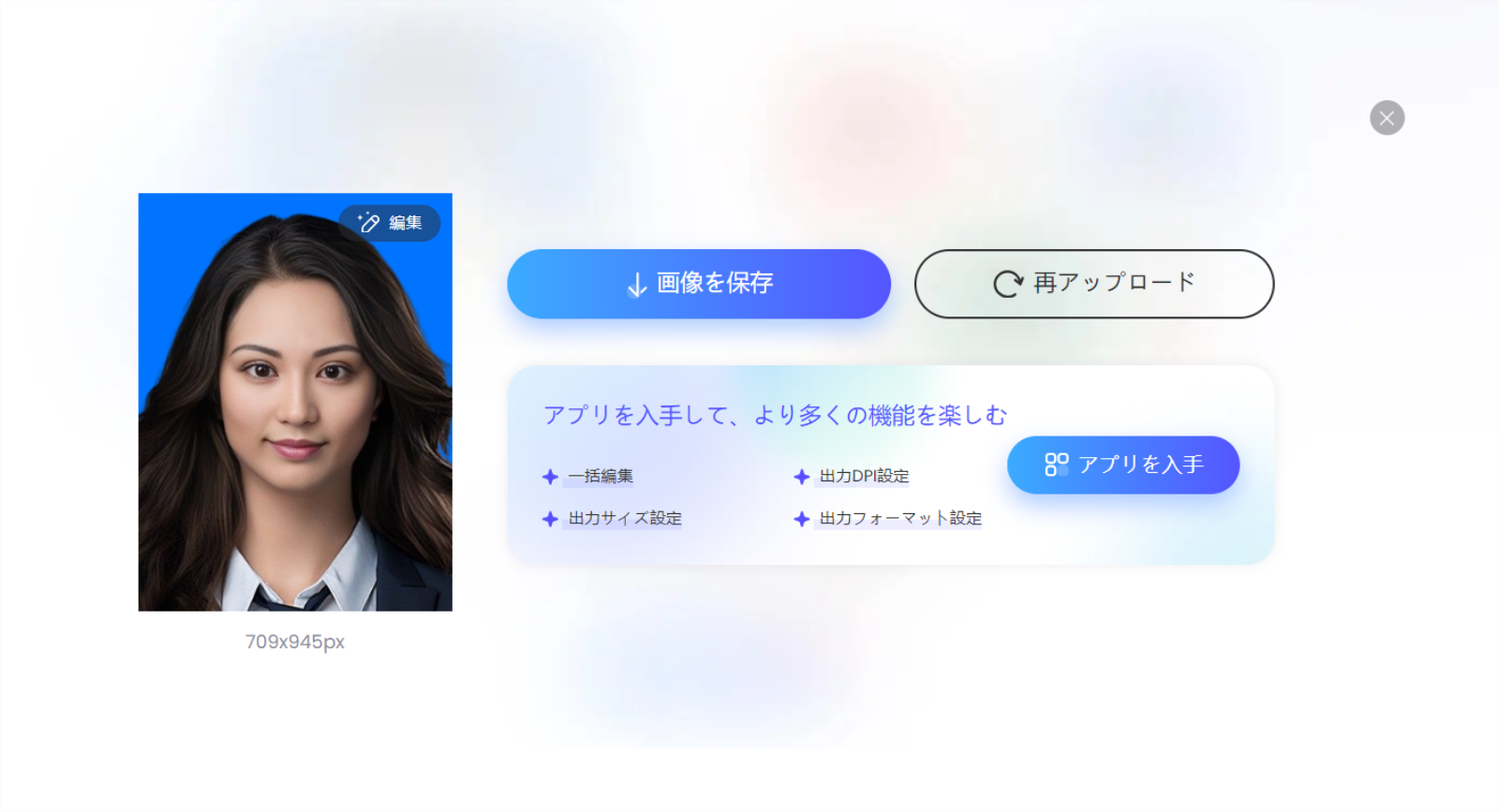 AIが自動で証明写真を加工してくれます。