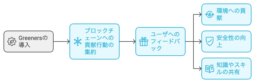 ブロックチェーン「Tapyrus(タピルス)※1」による透明性の高い貢献価値の保存を基盤とし、貢献行動へのフィードバックループ及びインセンティブのサイクルを回すことで、業界の安全性と環境意識を向上させ、持続可能な社会の実現に向けた強固な基盤を構築します。