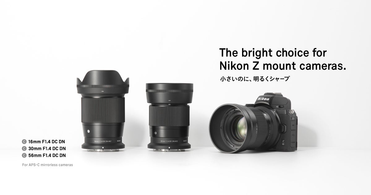 現在Lマウント、ソニーEマウント、富士フイルムXマウント、マイクロフォーサーズマウント、キヤノンEF-Mマウントの5マウントで展開している、16mm F1.4 DC DN | Contemporary、30mm F1.4 DC DN | Contemporary、56mm F1.4 DC DN | ContemporaryのF1.4単焦点レンズ3本を、ニコン Z マウント用としてとして同時発売いたします。