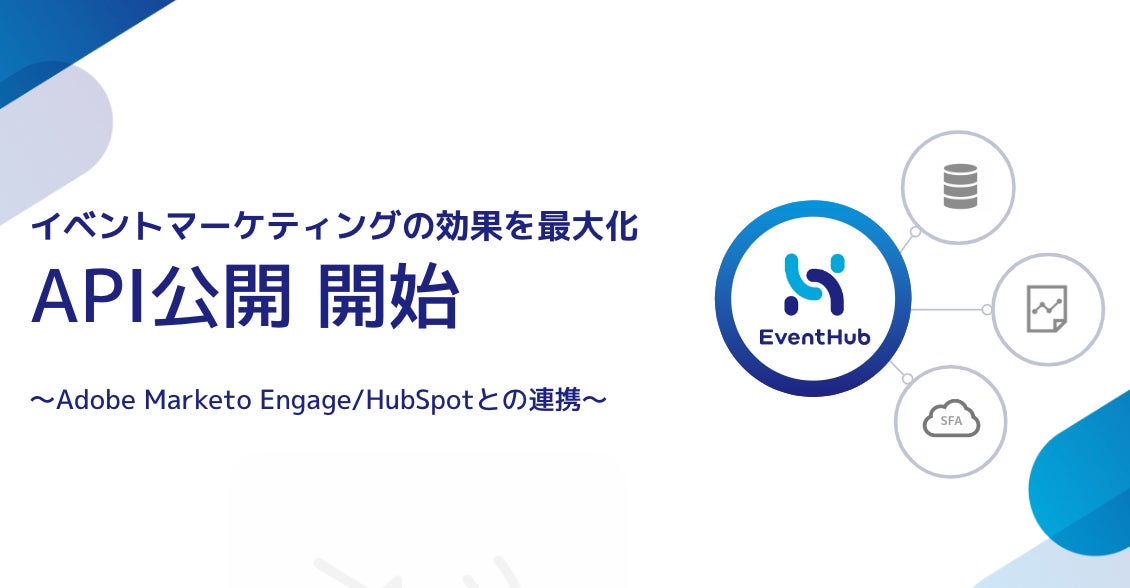 株式会社EventHub (東京都中央区、代表取締役CEO:山本 理恵) が提供するイベントマーケティングプラットフォーム「EventHub(イベントハブ)」は、1月18日より日本発のイベントマーケティングプラットフォームとして初(※1)となるAPIを公開しました。API連携の第一弾としてAdobe Marketo EngageとHubSpotの2つのMAツールとの連携を開始したことをお知らせします。