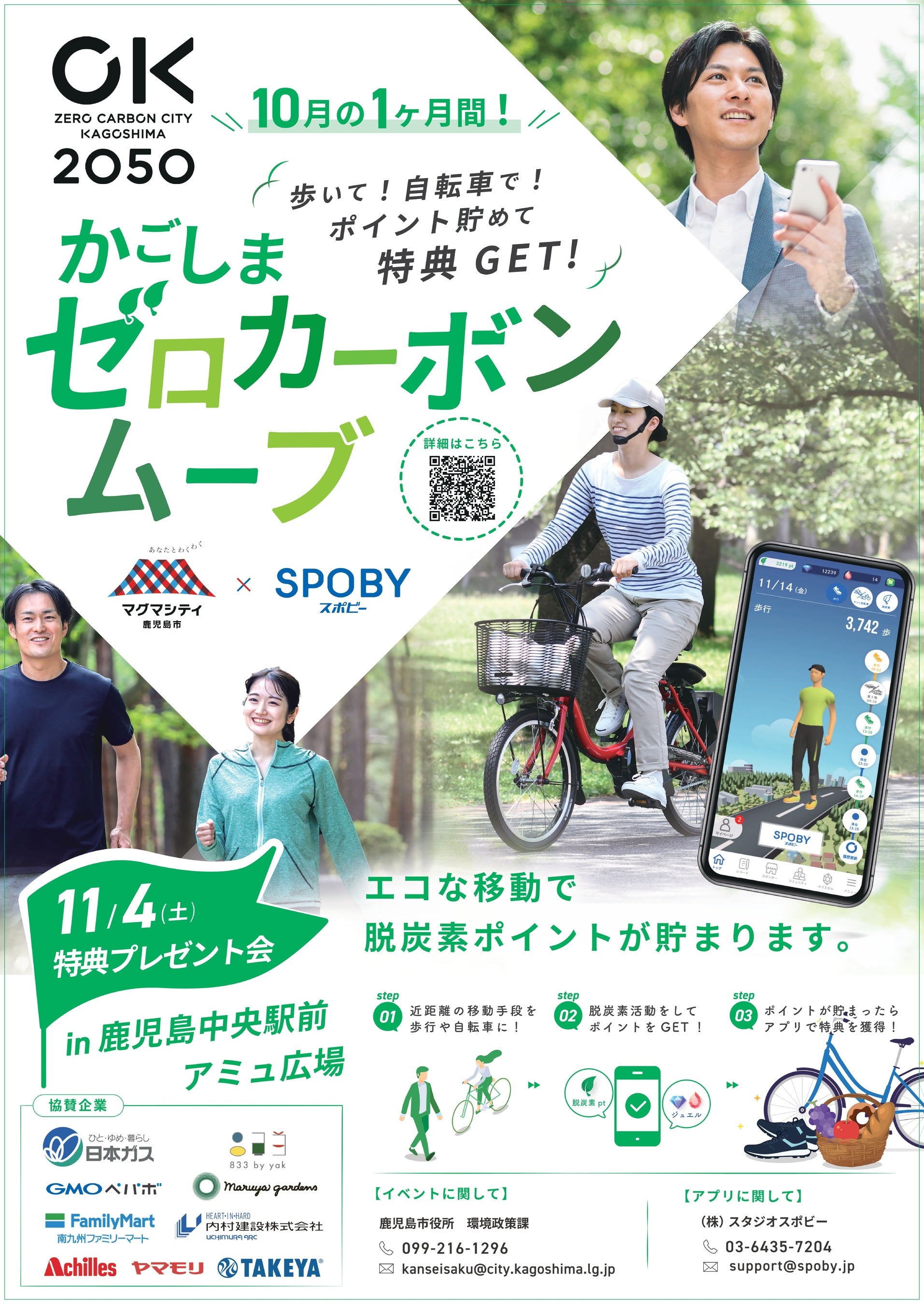 鹿児島市 / 徒歩や自転車移動促進で市民の脱炭素行動変容を促進 / エコライフアプリ「SPOBY」