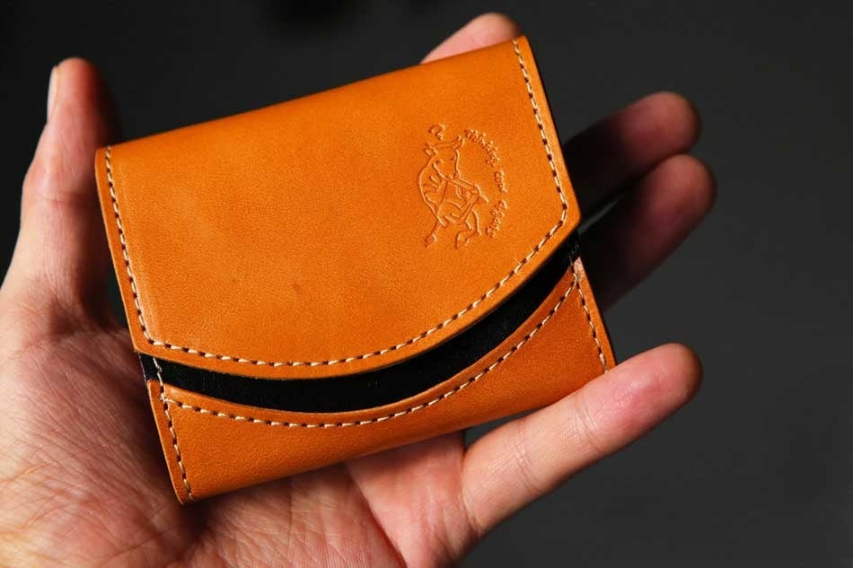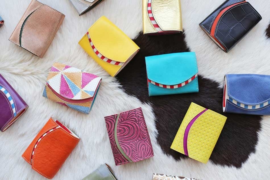 工房に100種類以上ある革の中からデザイナーが色合わせし作られているので、すべて一点物の小さいふです。