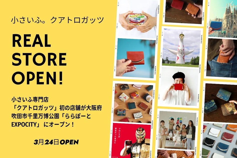 地元大阪茨木市の小さいふ専門店「クアトロガッツ」初リアル店舗が「ららぽーとEXPOCITY」に4月1日オープン!1000色の中から自分だけのお財布を見つけよう!
