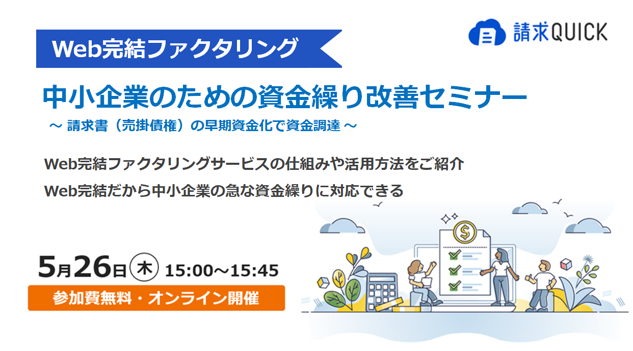 「請求QUICK」の「請求書買取」機能“Web完結ファクタリングサービス”で実現する「中小企業のための資金繰り改善セミナー」を5月26日に開催