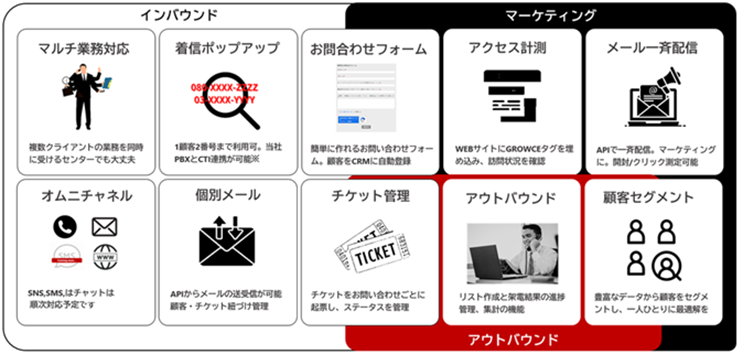 株式会社コラボス(本社:東京都千代田区、代表取締役社長:茂木 貴雄、以下「当社」)は、コールセンターで利用される顧客情報管理(CRM)システムにマーケティングの機能を搭載した統合CRMマーケティングシステム「GROWCE(グロウス)」において、新機能を追加いたしましたのでお知らせいたします。本機能の追加により、通知メール機能の他、ユーザー側で簡単に設定変更が可能となり、利便性が向上しました。本システムは、お客様と共に成長するということをコンセプトにしており、この度お客様の声をもとに追加機能を付加し、更なる拡販に努めてまいります。