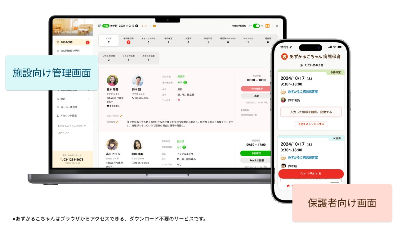 の度、病児保育ネット予約サービス「あずかるこちゃん」を導入することで保護者の