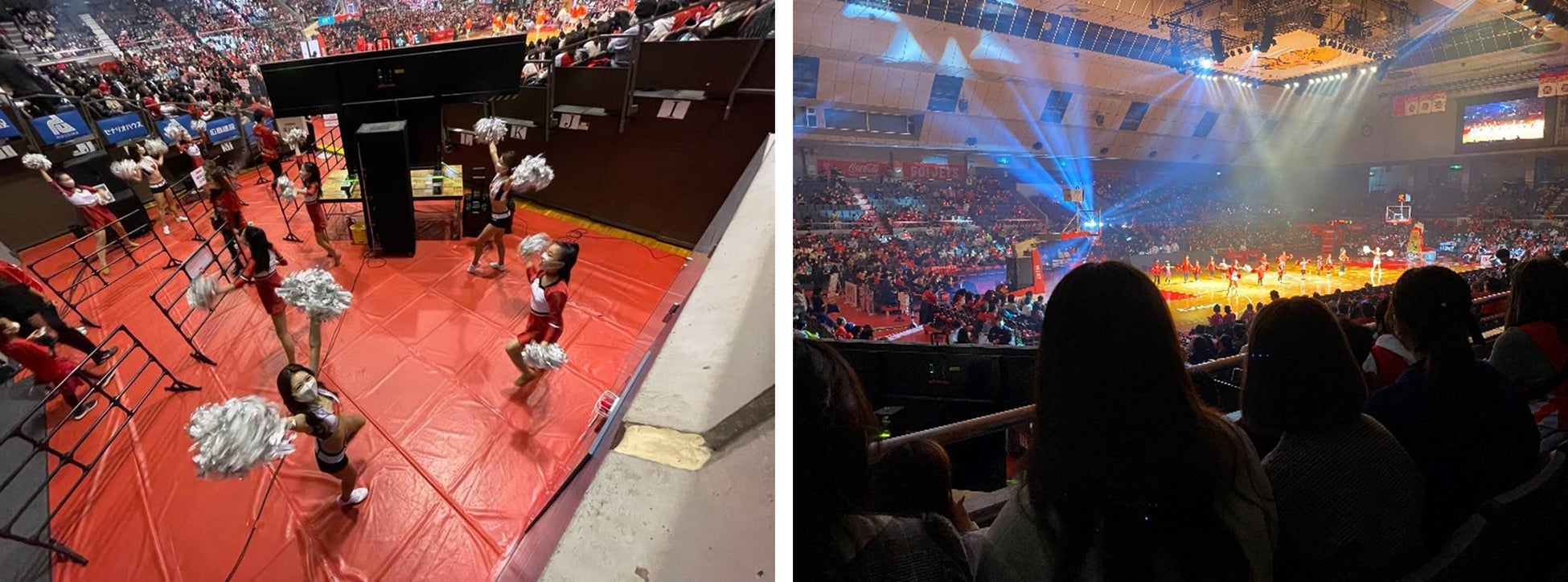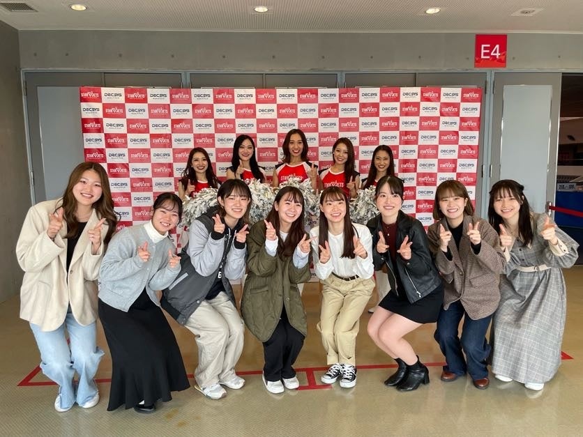 特別招待された千葉商科大学チアリーディングサークルの学生が、試合中にチアリーダーが見せるプロ意識を間近で見学!