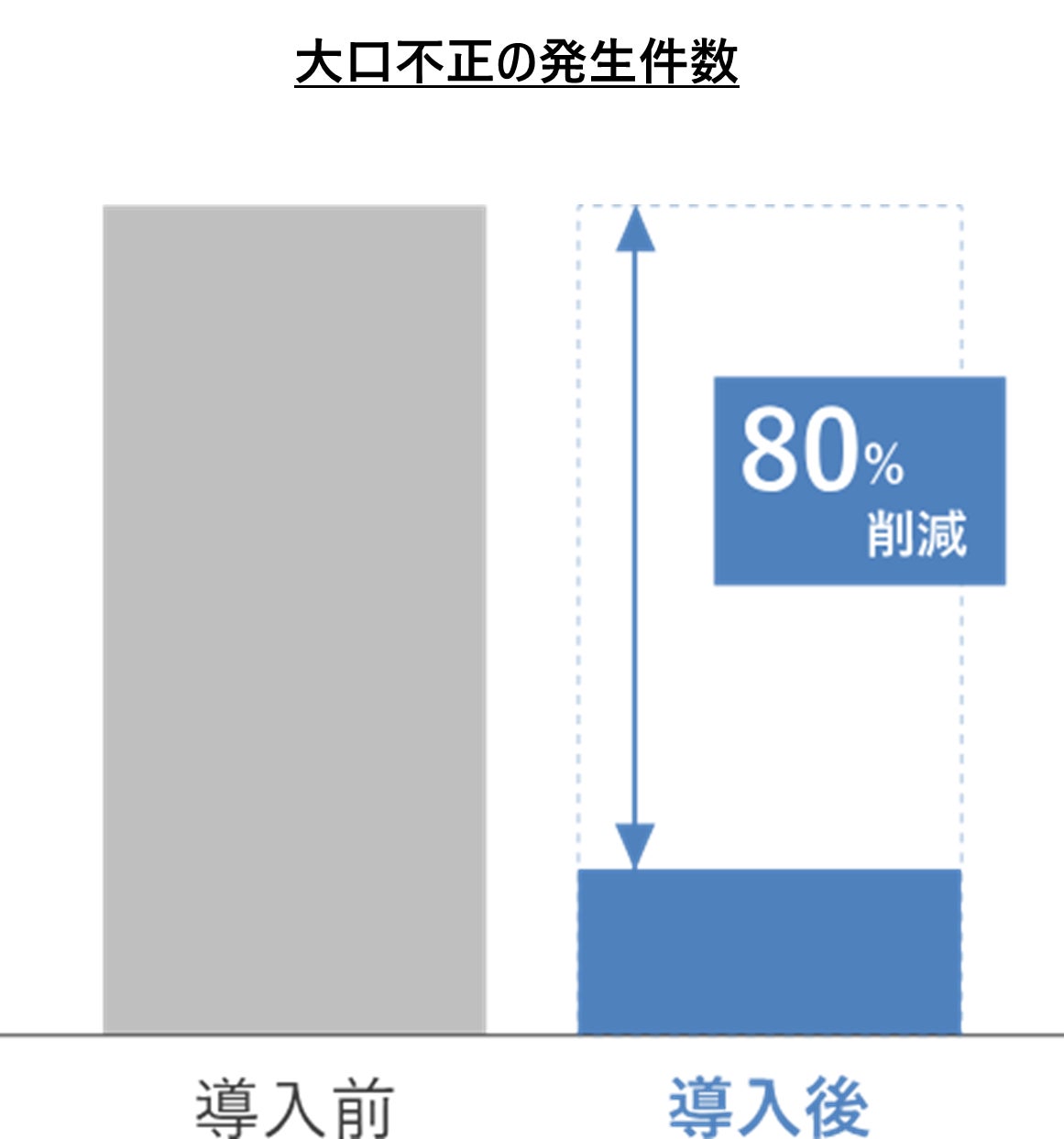 当社がパートナー企業と実証実験を3ヶ月間実施した平均的な効果として、大口不正(一斉かつ大規模に行われる不正攻撃)の発生件数が、導入前と導入後を比較して約80%削減することができております。