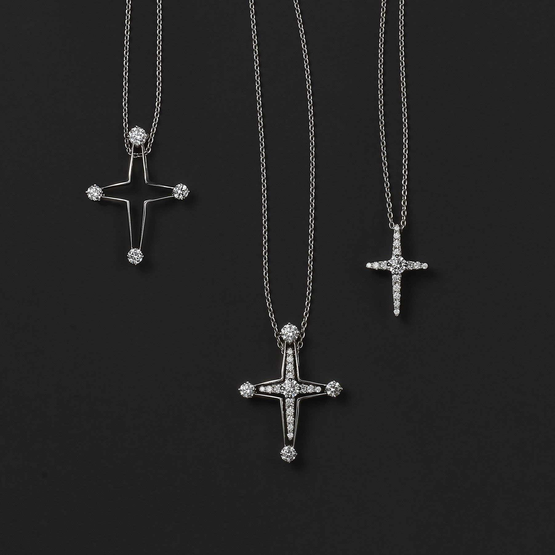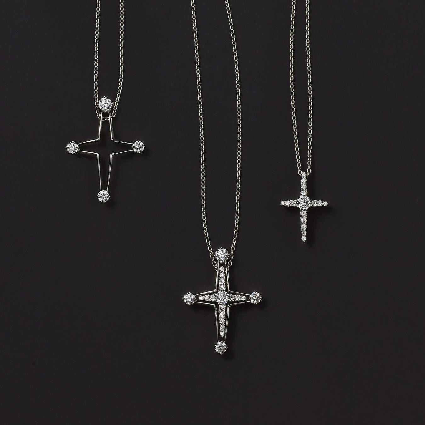 4石を配したフレームとダイヤモンドを配したクロスをぴったりと重ねて使用するだけでなく、それぞれ単品のペンダントトップとして楽しめます。