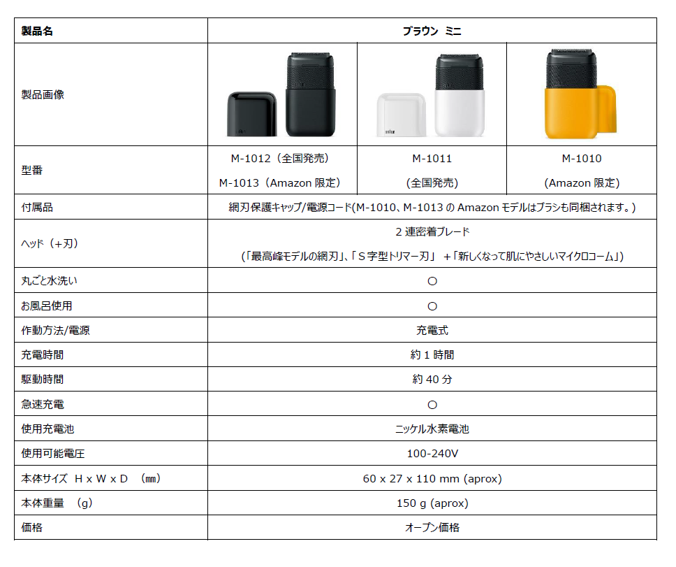 この度、『ブラウン ミニ』は、ビジネスシーンや旅行、ナイトタイムといった外出時での「夕方ヒゲ」等のヒゲの悩みを解消し、1日を通してヒゲのないきれいな顔でいたいと感じる男性がより快適な生活を送って頂くことが出来るよう、肌に優しいだけでなく、外出時によりスタイリッシュに2台目シェーバーをご利用いただけるよう新カラーも追加いたします。