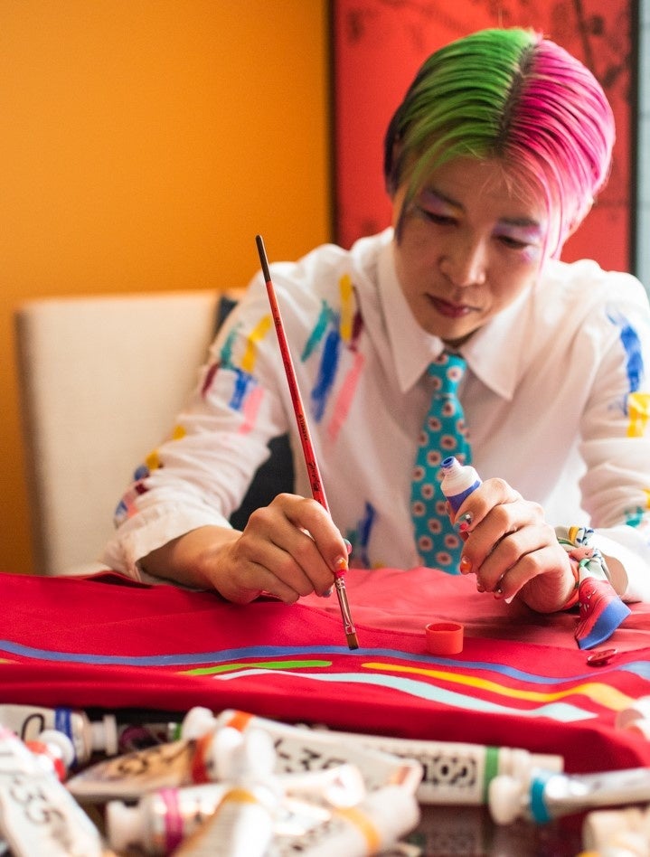 フランス・パリを拠点に世界で活躍するアーティスト。独自のクリエイション哲学を持ち、ライフスタイルに即したベーシックなアイテムをデザイン。1点1点オリジナルのハンドペイントでアートを描き、プリントやステッチでは表現できない有機的で自由度の高いタッチを活かしたモノづくりを追求。
